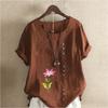 Women's Fashion Round Neck Short Sleeve T-shirt Casual Cotton Linen Graphic Shirt Leisure Loose Flower Prined Summer Blouse Tops — buy online with free worldwide shipping!