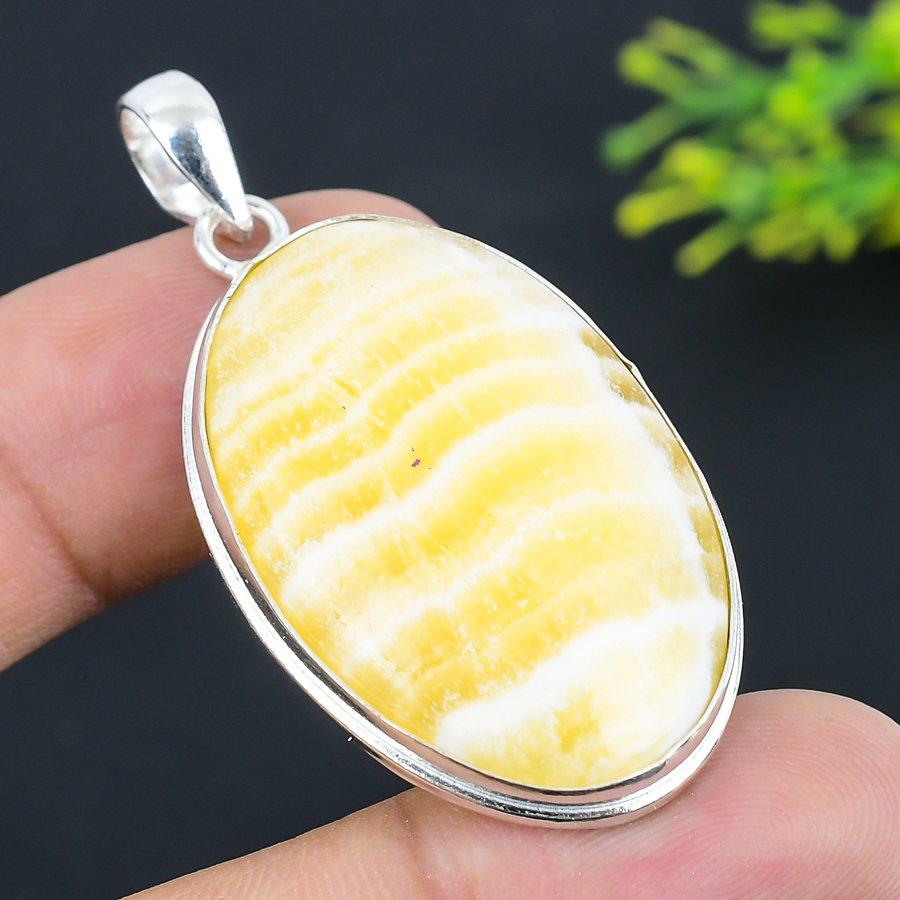 Yellow Septarian Gemstone 925 Sterling Silver Jewelry Pendant 2.21 V2g77 — buy online with free worldwide shipping!