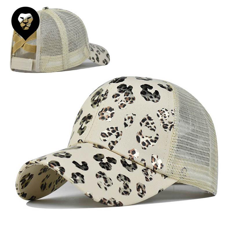 Foreign trade golden leopard print cross ponytail hat European and American women ponytail hat sunscreen visor ponytail baseball cap — buy online with free worldwide shipping!
