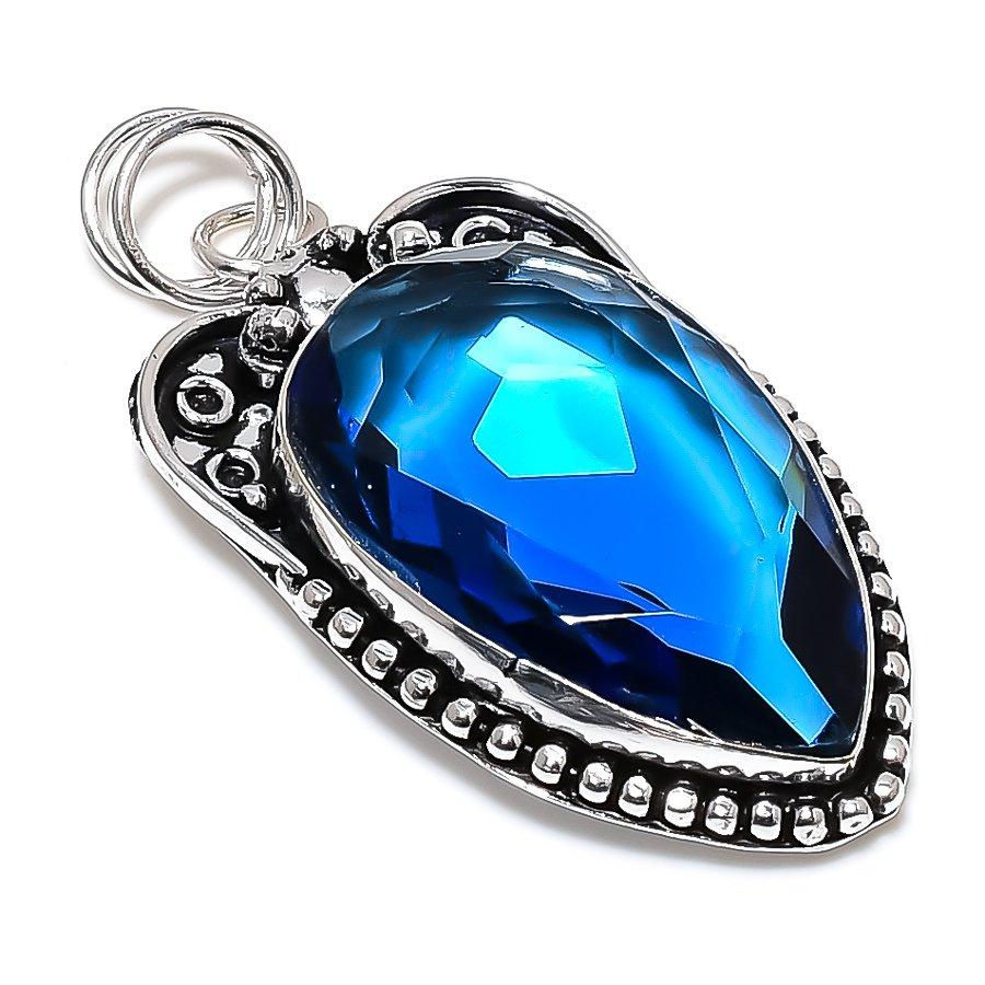 London Blue Topaz Gemstone Handmade 925 Sterling Silver Gift Pendant 2.44"