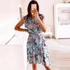 IHUASU Summer Holiday Style Ruffle Short Sleeve Chiffon Printed Rose Dress — buy online with free worldwide shipping!
