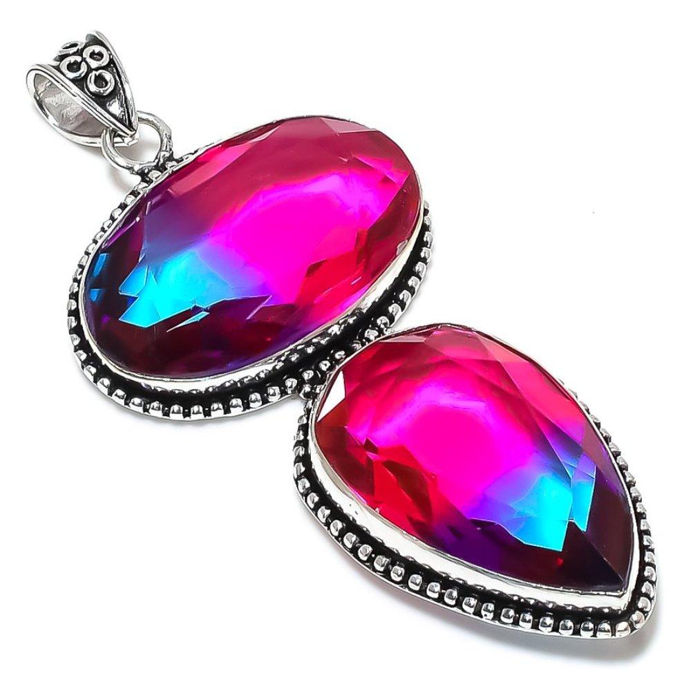 Bi-Color Tourmaline Gemstone Handmade 925 Sterling Silver Pendant 3.55" L4I18