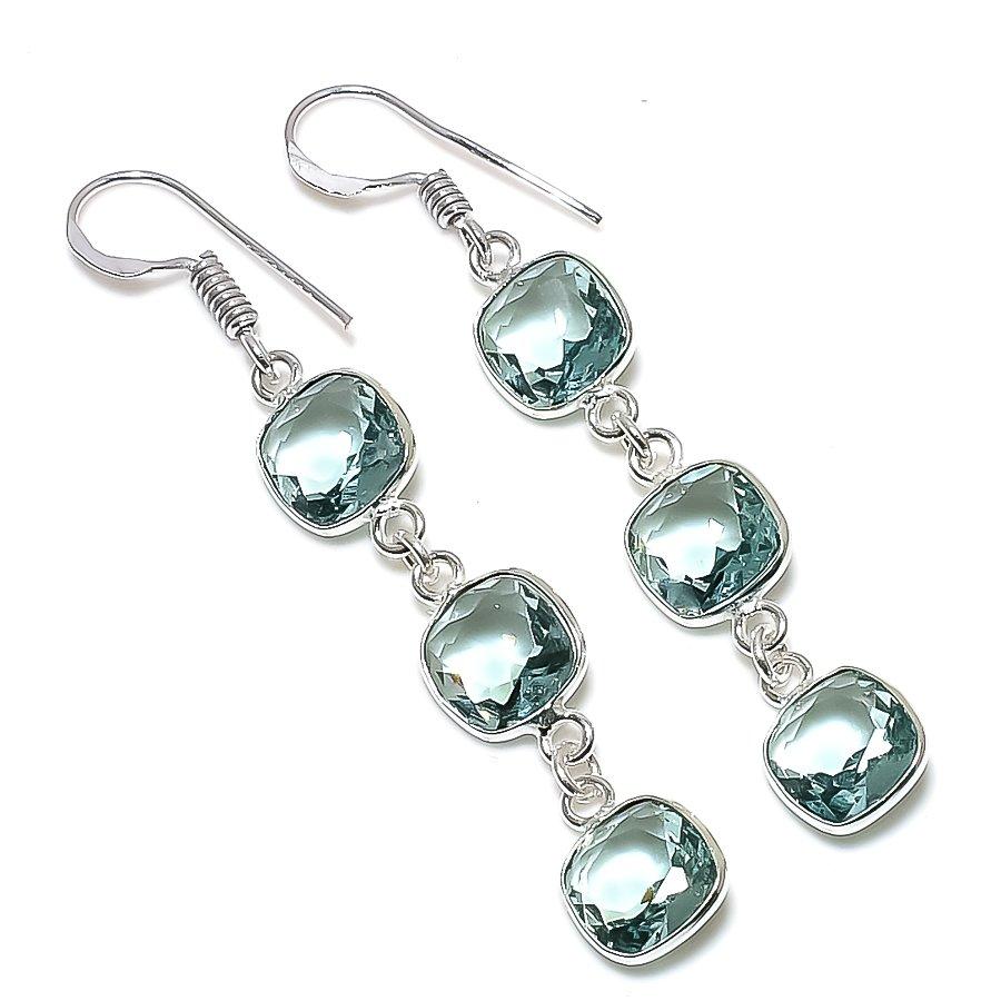 Green Amethyst Gemstone Handmade 925 Sterling Silver Jewelry Earring 2.21" H9l97