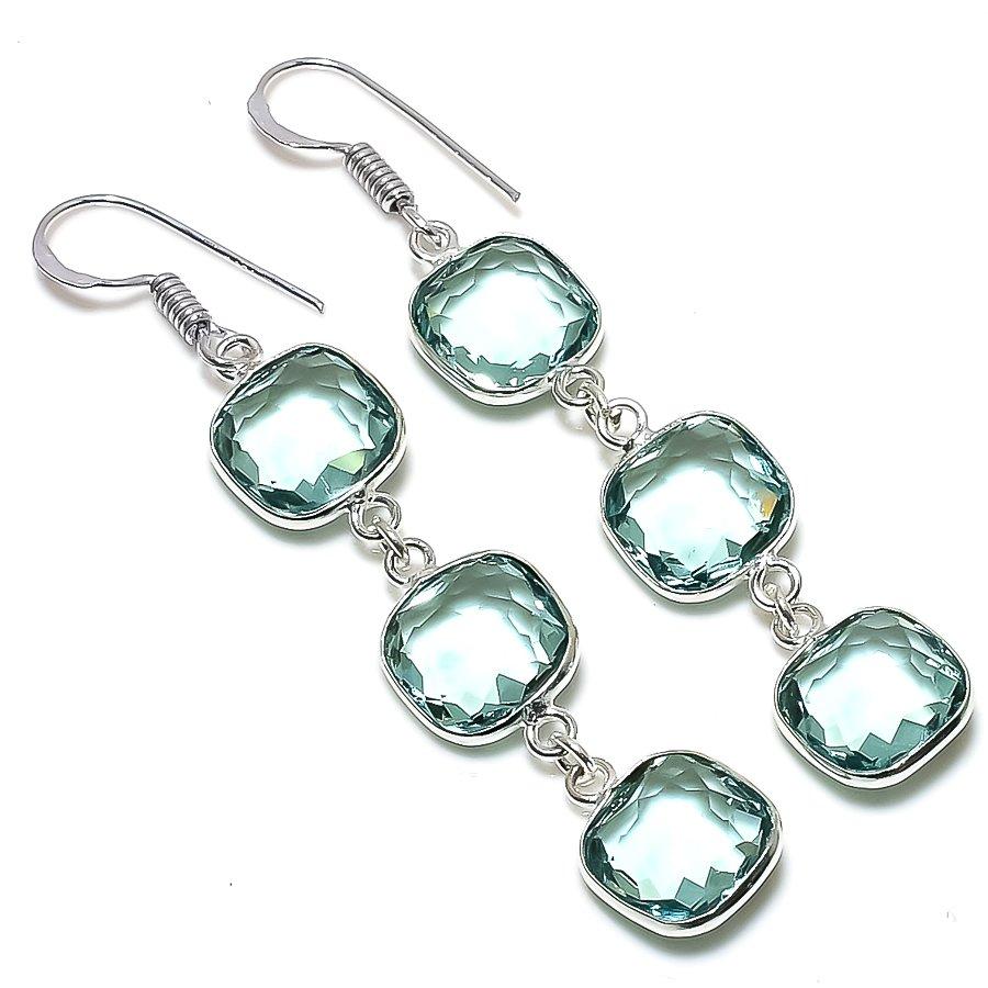 Green Amethyst Gemstone Handmade 925 Sterling Silver Jewelry Earring 2.48" O2J62