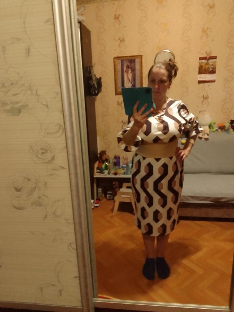 Unfortunately, by the time the dress arrived, I had lost weight. I need to buy a corset or waist belt. The dress is longer than in the photo (for this, minus one star). The fabric stretches. There is a zipper on the back