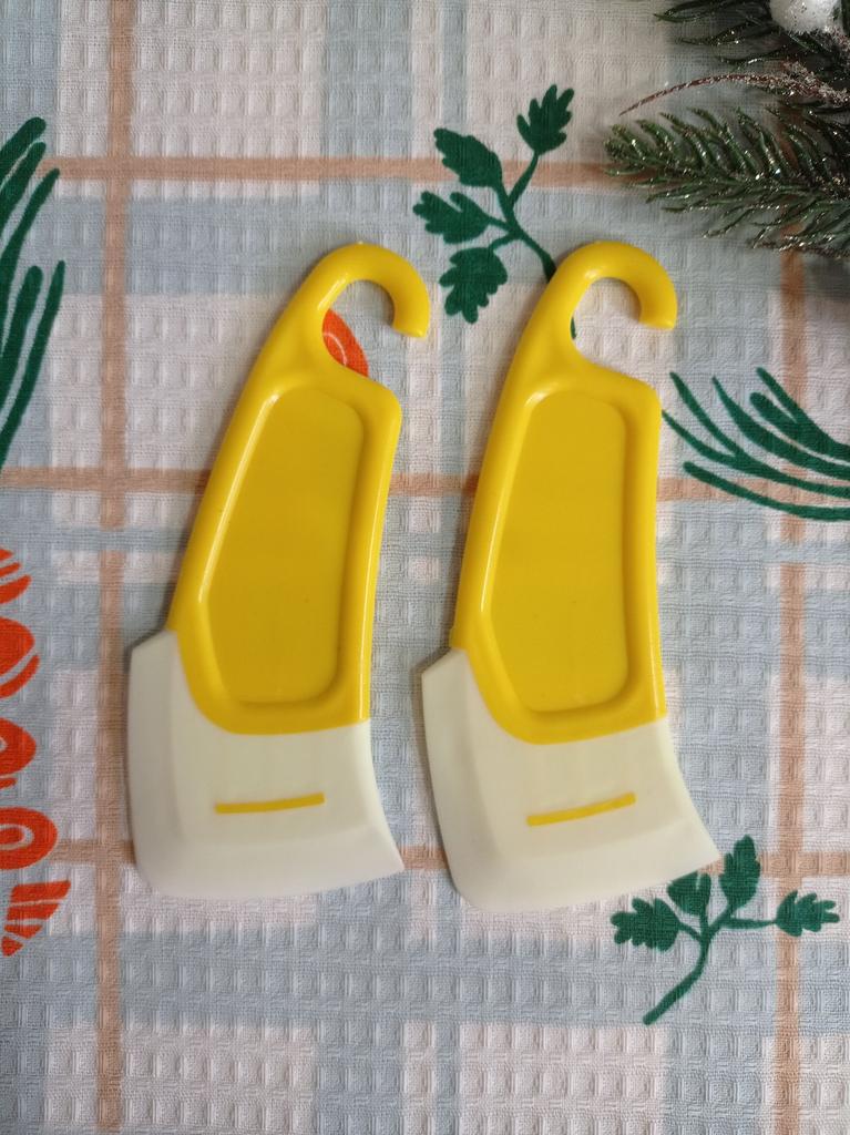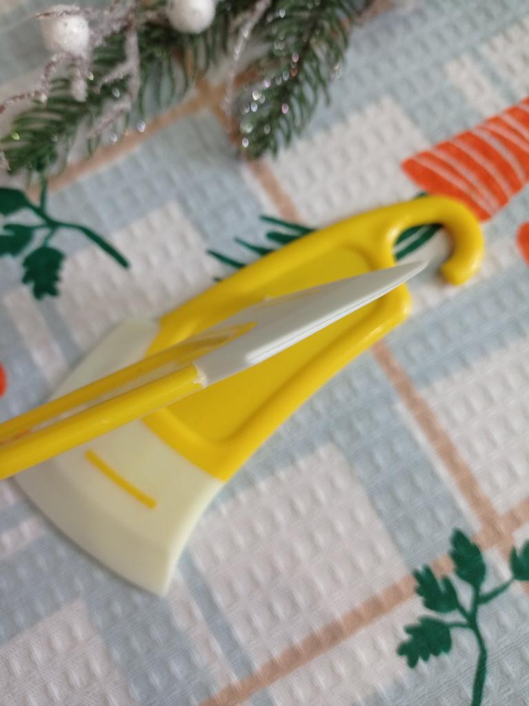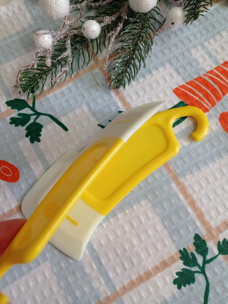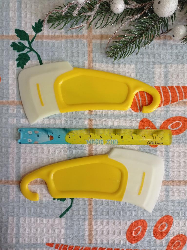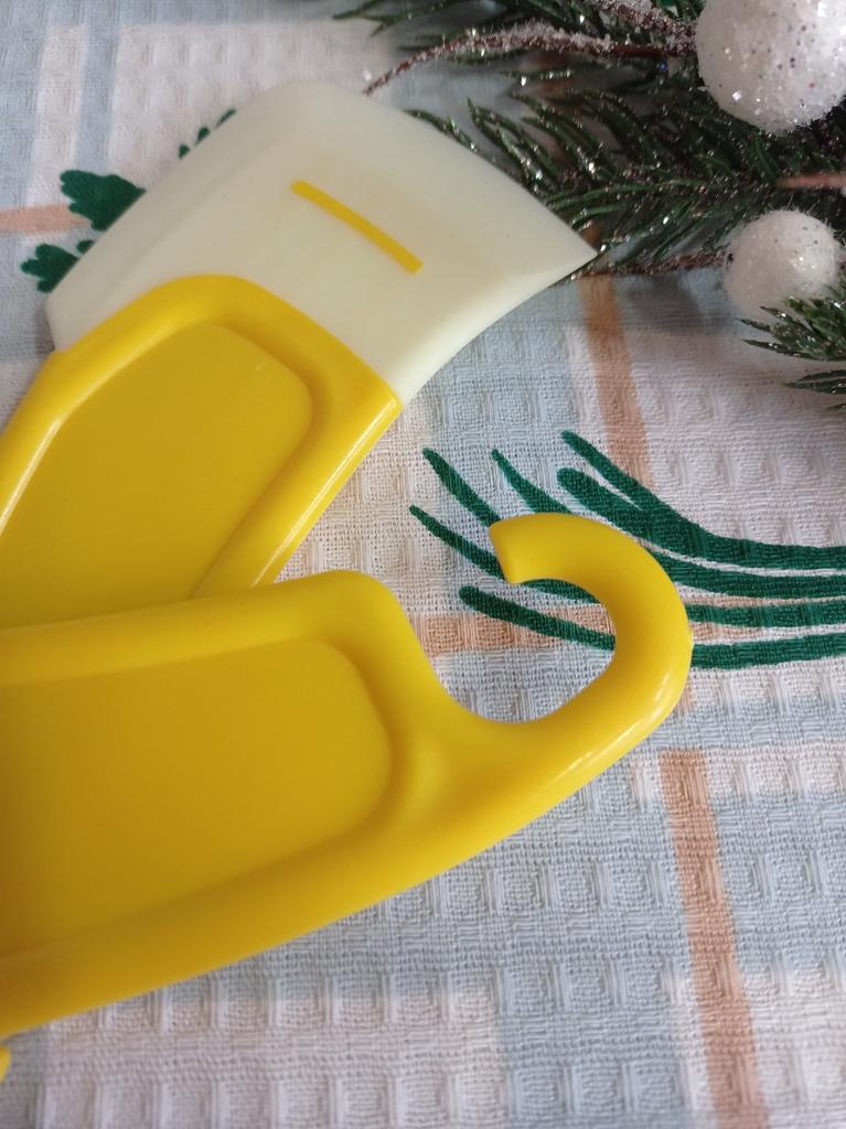 Kitchen scraper. 🥘🍳 Color: yellow. 2 pcs. The seller has the option to order one scraper, or two at once. I decided that the thing was useful and ordered two at once. The scraper is made of durable plastic and soft silicone. It has a comfortable handle. It is convenient to use the scraper even if your hands are wet or soapy, it does not slip.. The scraper does a great job: it removes food residue from dishes. It is even suitable for dishes with a Teflon coating. It is also very convenient to scrape the remains of honey or jam from glass jars with it, you don't have to be afraid that one wrong move and you will have a bunch of broken glass and a spoiled mood 🥴 The scraper is easy to clean in warm water 💧 and has a convenient hook for hanging.. I liked it. A good thing for the kitchen ☺️👍. Recommend 🛒. If the feedback was useful, put it as a favorite ❤️💛 I received the goods in 19 days in a combined package 🚚. The track was tracked completely. The arrival at the point of issue was announced by sms 📲. Packaging: bubble bag and individual packaging. (Each scraper in sealed individual packaging.) Goods without defects and defects, without foreign odor. Happy shopping and fast deliveries to everyone 🛍️☺️🚀❄️ Comfort and well-being to you and your families 🏡 ❤️ PS: Need promo codes? Then be sure to visit my Telegram channel Olena.joom.thebest (t.me/olenajoom), where I regularly publish promo codes to make your purchases even more profitable 😘🛍️.