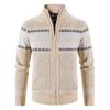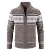 Men's Casual Autumn Winter Zipper Sweater Stand Collar Printed Cardigan Tops Sweater Blouse Coat