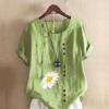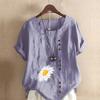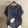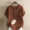 Women's New Fashion Linen Shirt Round Neck Short Sleeve Flower Printed T-shirt Summer Ladies Casual Plus Size Blouse Tops — buy online with free worldwide shipping!