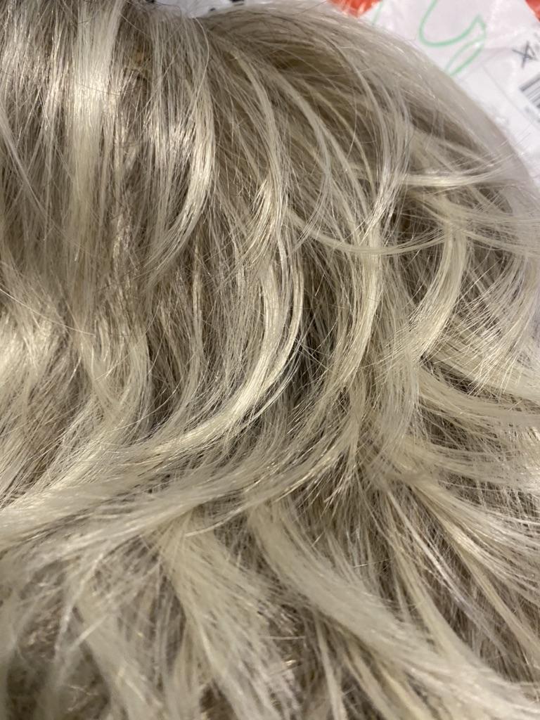 Women's Short Straight Fluffy Wig with Side Bangs Blonde and White Front Lace Heat Resistant Synthetic Fiber Wigs — buy online with free worldwide shipping!