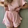 Summer Ladies Casual Printed Suit Lotus Leaf Short-sleeved Round Neck Shorts Pajamas Two-piece Suit — buy products online with free worldwide shipping!
