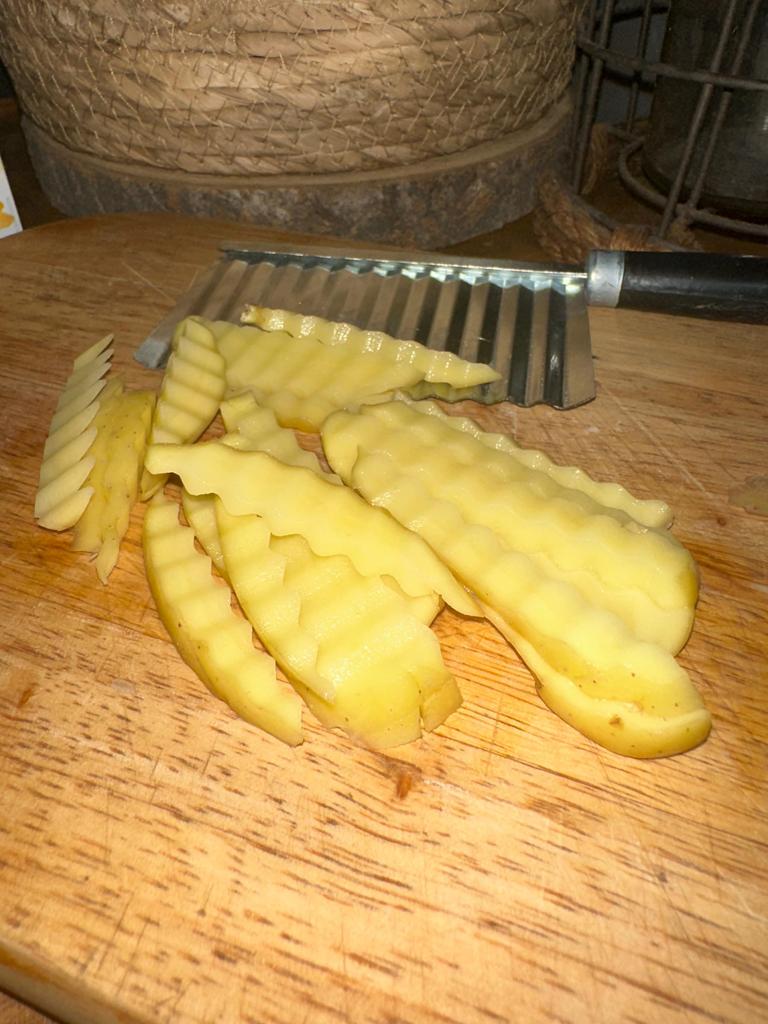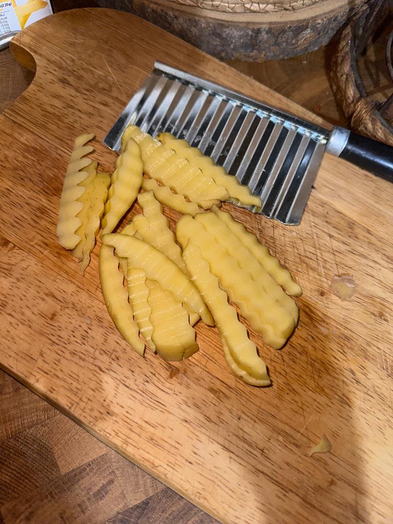 🍟 I received the wave knife after four weeks delivery time, very well packaged and delivered to Austria. 🍟 The product fits very well in the hand, is made of stainless steel and can be washed wonderfully in the dishwasher. 🍟 This model is ideal for making French fries yourself, but also for cutting any kind of fruit or vegetables into waves and serving them in a visually appetizing way. Cutting the French fries is done by simply cutting through the potatoes without any effort. Today I made my very first French fries myself and have never eaten such wholesome fries before . 🍟 It is a great knife that does wonderful kitchen work and is cost effective! I am very, very excited and would definitely recommend this wave knife!👍💯🔝 Music by Capcut pro