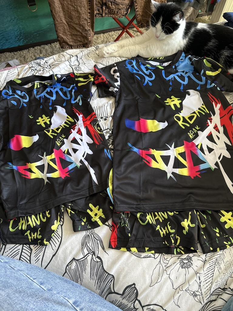 2 PCS Boys Casual Glow-in-the-Dark Cute Ink Graffiti Print Short Sleeve T-Shirts and Shorts Set — buy online with free worldwide shipping!