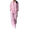 This versatile women's two-piece suit is perfect for all seasons with its breathable fabric, ensuring comfort and style in spring, summer, and autumn. The set includes a loose-fitting shirt and slacks, featuring a solid color, long sleeves, single button closure, wide-leg casual pants, and double side pockets for added convenience.