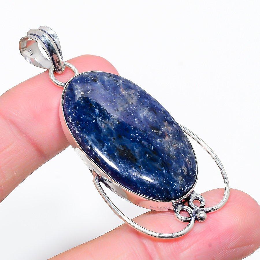 Sodalite Gemstone 925 Sterling Silver Jewelry Pendant 2.32" I6V70