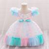 Rainbow Flower Baby Girls Party Dress Toddler Tulle Puff Sleeve 1st Birthday Wedding Princess Prom Dress Bridemaid Baby Clothing