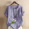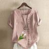 Women's Fashion Round Neck Short Sleeve T-shirt Casual Cotton Linen Graphic Shirt Leisure Loose Tulips Prined Summer Blouse Tops