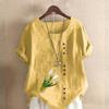 Women's Fashion Round Neck Short Sleeve T-shirt Casual Cotton Linen Graphic Shirt Leisure Loose Tulips Prined Summer Blouse Tops — buy online with free worldwide shipping!