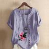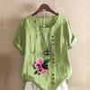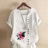 Women's Fashion Flowers Prined Round Neck Short Sleeve T-shirt Casual Cotton Linen Graphic Shirt Leisure Loose Summer Blouse Tops Plus Size — buy online with free worldwide shipping!
