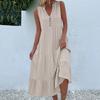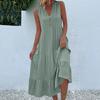Women's Fashion Sleeveless Pleated Loose V-Neck Mid-Length Solid Colour Dresses