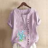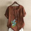 Women's Fashion Flower Prined Round Neck Short Sleeve T-shirt Casual Cotton Linen Graphic Shirt Leisure Loose Summer Blouse Tops Plus Size — buy online with free worldwide shipping!