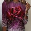 Tops For Women Snowflake Rose Print Round Neck Long Sleeve T-shirt Fall Casual Slim Pullover Women's Long Sleeve Top — buy online with free worldwide shipping!