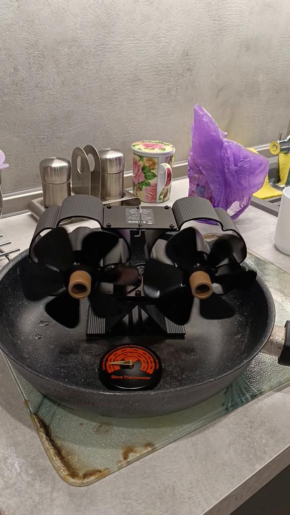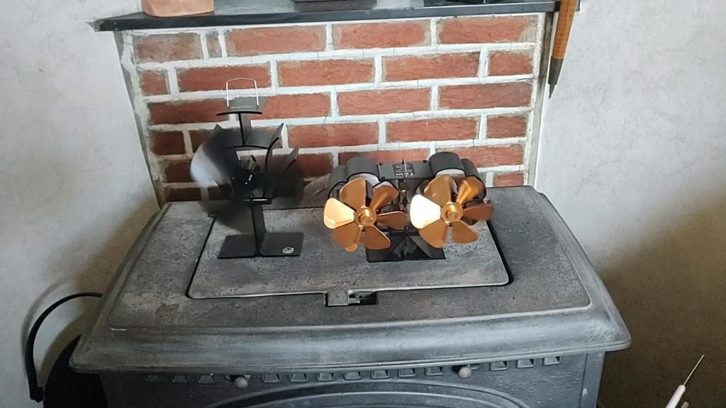 Dual Head 6 Blade Heat Powered Stove Fan with Carrying Handle and Overheating Protection Portable — buy online with free worldwide shipping!