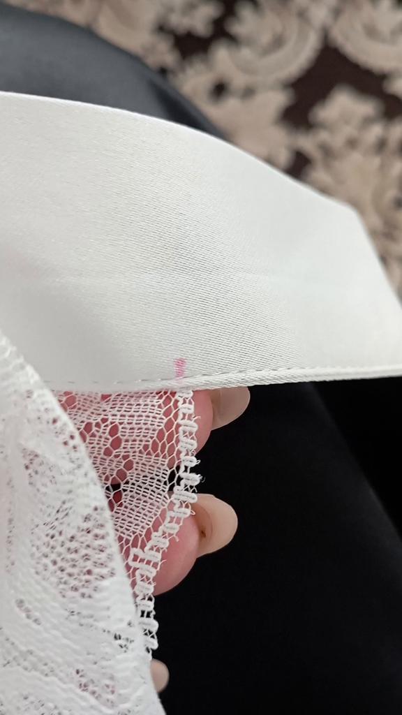 The stitching markings for the lace were made pink on white fabric. Is there really no other way to solve this problem......