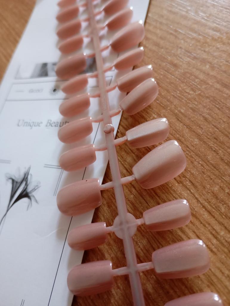 Magnificent false nails to use with UV glue as for capsules it works very well. Color more orange than champagne.