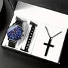 3pcs/set Fashion Men's Sports Stainless Steel Mesh Belt Quartz Watch & Bracelet Neckalce Set