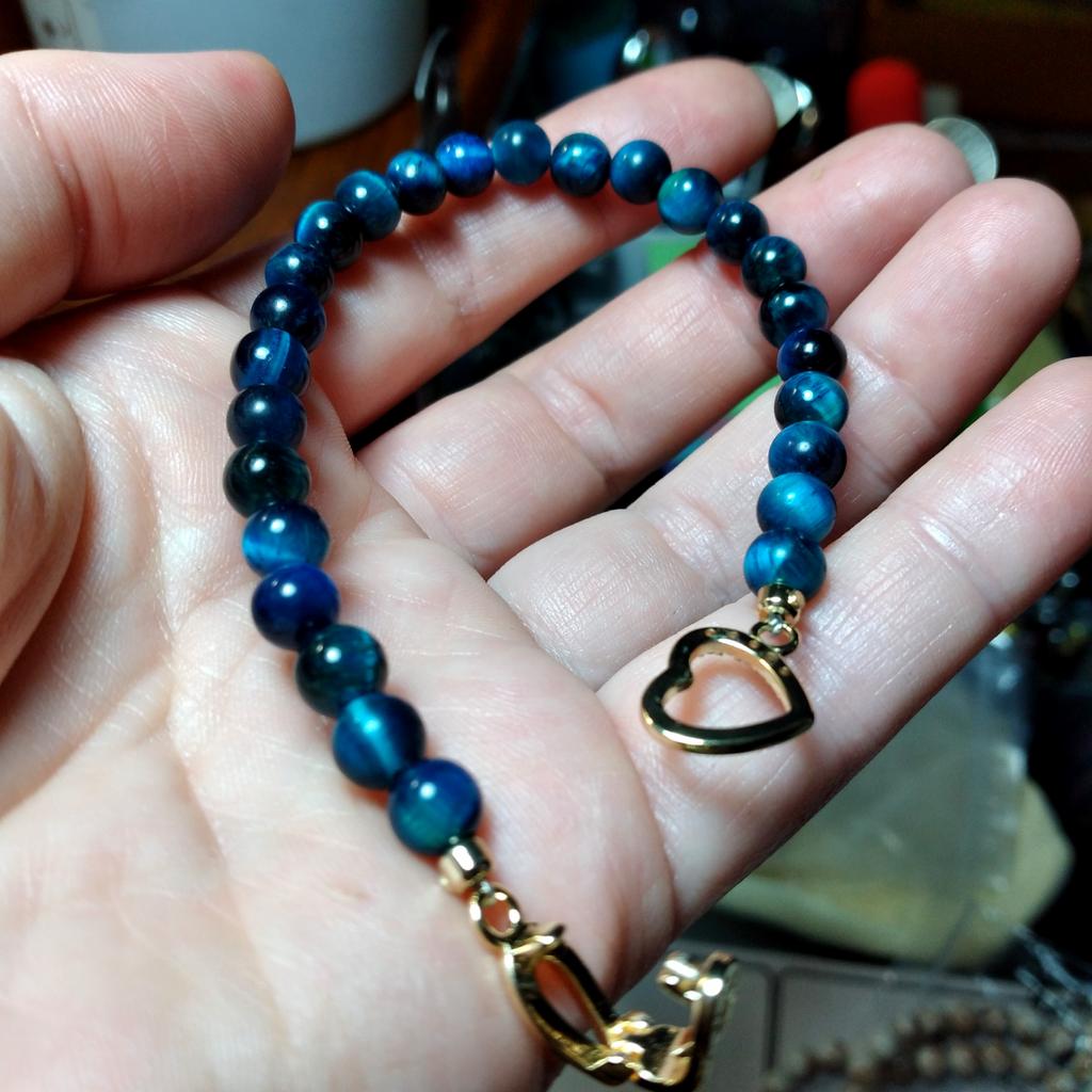 6mm Blue Tiger Eye Beads Copper Heart Shape Beaded Strand Bracelet & Bangle Women Men Lover Handmade Jewelry Valentine's Gifts — buy online with free worldwide shipping!