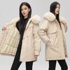 Autumn Winter Thicken Warm Detachable Parka Women Casual Fur Collar Solid Color Big Pocket Loose Hooded Coat Jackets Three-way Wear Outwear