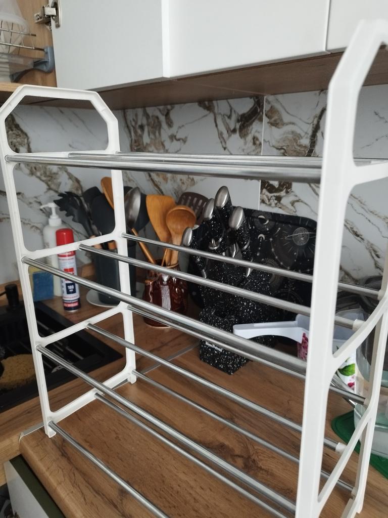 The shelf is smaller than stated, the quality is terrible, it's not even plastic, but rather rubber. You can't put anything on it except house slippers, it falls apart right away