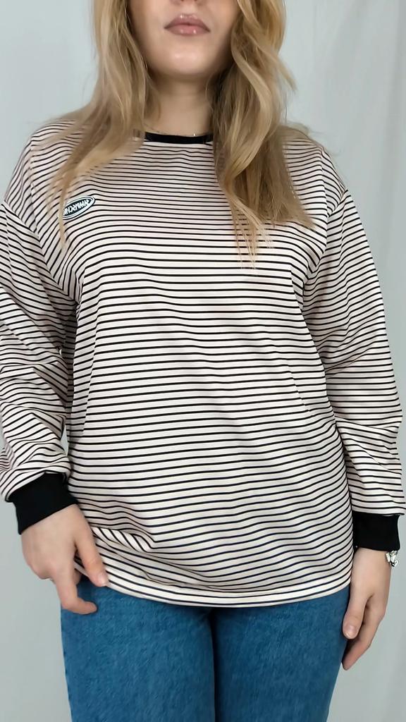 Striped Bottom Shirt Women's Plus Size Autumn Round Neck Long Sleeve Sweatshirt Top — buy online with free worldwide shipping!