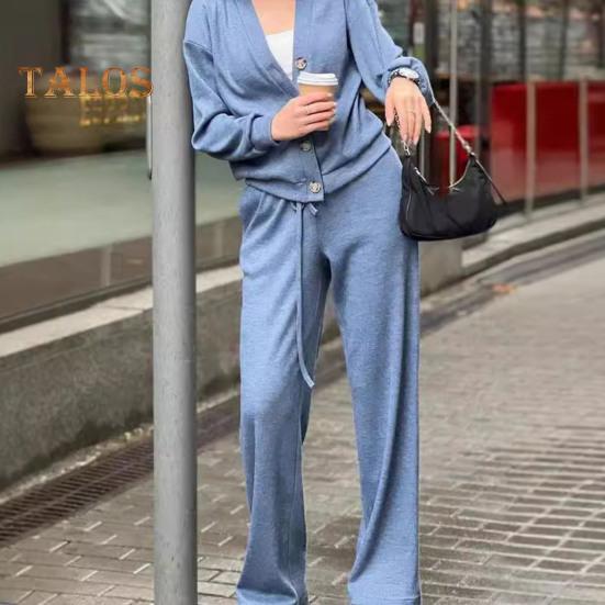 Elevate your style effortlessly with this Women's Casual Two-Piece Set featuring a commuting cardigan long-sleeved top and wide-leg trousers, exuding a chic and versatile charm for any occasion.