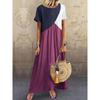 VEZFAA Women's Fashion Summer Spring Colour Block Print Short Sleeve O-Neck High Waist Casual Dresses — buy online with free worldwide shipping!