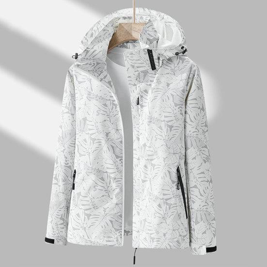 Introducing our Women's Printed Jacket, a perfect blend of elegance and fashion. Made from 100% polyester, this versatile and comfortable coat is ideal for spring and autumn wear. With its simple yet stylish design, this jacket features a printed hood, zipper closure, and two side zipper pockets. It can be easily paired with various tops and pants to create a smart and casual look that highlights your dynamic and charming temperament. Whether you're going on vacation, attending a party, or simply enjoying some leisure time outdoors, this jacket is the perfect choice. It's also unisex, making it suitable for couples who want to match their outfits. Don't miss out on this must-have addition to your wardrobe!
