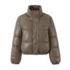 This stylish women's cotton jacket is a must-have for the winter season. Featuring a solid color design, medium-short length, stand-up collar, and zipper concealed button closure, this jacket exudes simplicity and elegance. The outer layer is crafted from high-quality PU leather fabric, adding texture and sophistication to the overall look.