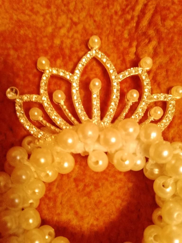 Cool crown! Surprised: the crown itself is metal, not plastic!!! Very good quality, you can feel the pleasant weight on your hand. Minus one star: one bead is missing on the crown itself(((