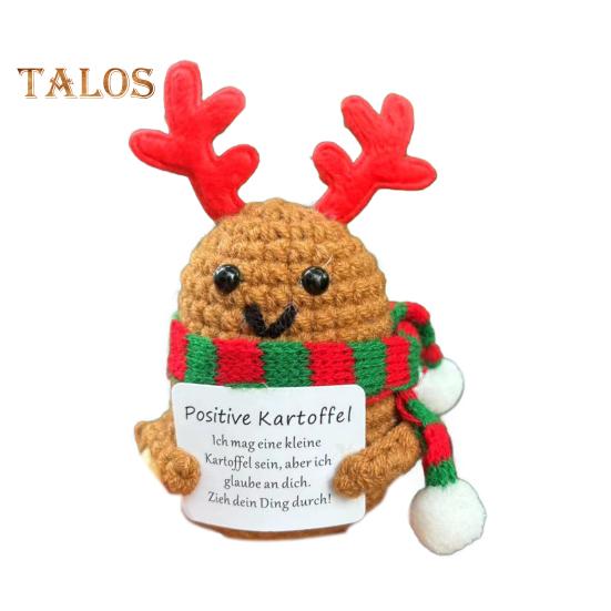 Inspiring Design: Meet the adorable knitted doll that not only charms with its cuteness but also uplifts spirits with inspiring words on an accompanying card. Whether you're joyful or downcast, this positive potato is a delightful presence that radiates happiness wherever it resides.
