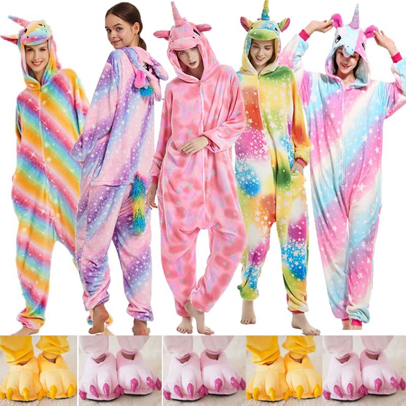 Animal Unicorn Onesies Kigurumi Pajamas Set Adult Unisex Costume Sleepwear Kids Winter Suit With Shoes