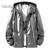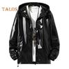 Embrace the latest fashion trends with this Spring and Autumn Men's Outerwear featuring a shiny design and a loose hooded silhouette. Crafted from soft and skin-friendly polyester fiber fabric, this jacket is not only stylish but also comfortable to wear all day long.