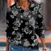 Ladies' Autumn And Winter Top With Zipper, Casual Retro Floral Print Long Sleeved Top