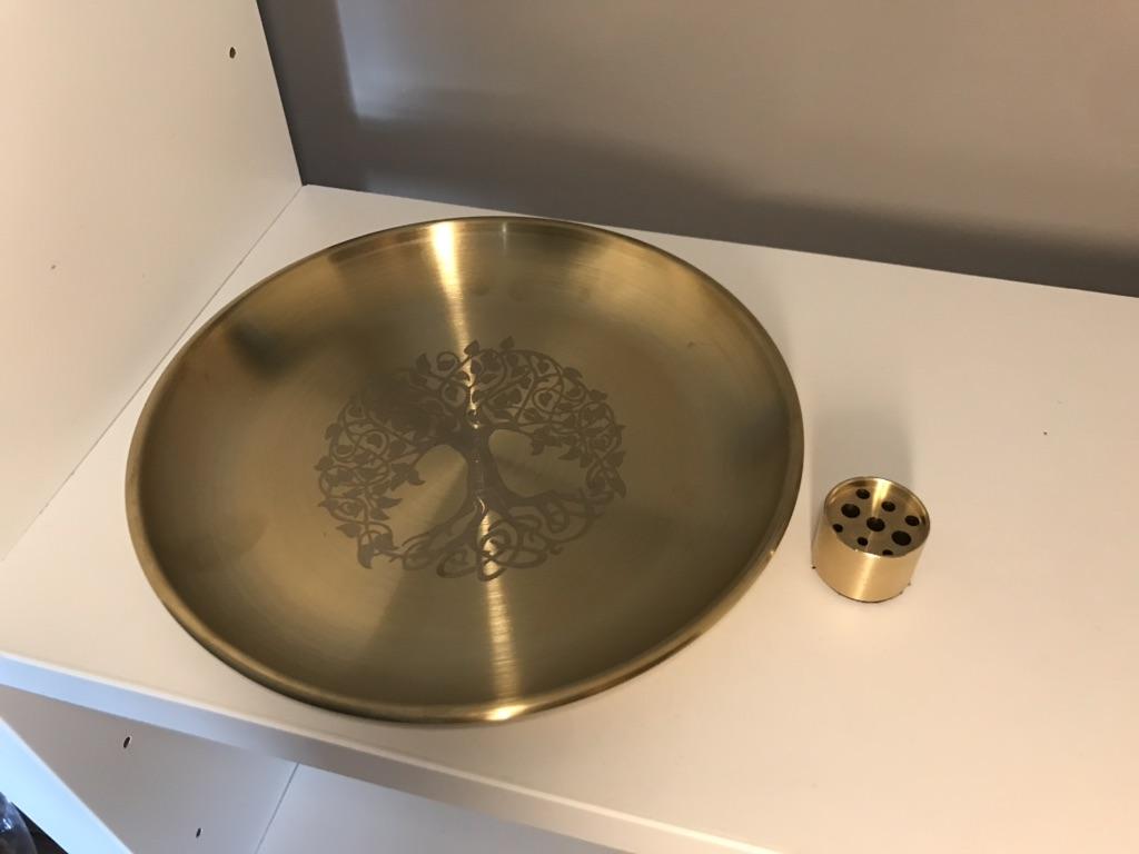 Stainless Steel Pagans Ritual Tray Altar Tree Pattern Plate Crystal Stone Shelves Candle Holder Incenses Burners