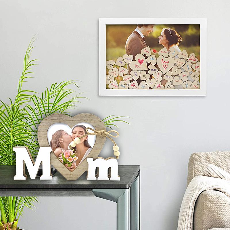 Letter Heart Photo Frame Wooden English Letter Photo Frame Dad Papa Mum Pattern Picture Frame