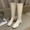 Fashion Winter Woman Knee-High Boots Fashion Comfort Soft Leather Square Low Heel Long Booties 2024 Trend Add Fur Women's Boots