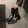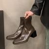 Fashion Women Ankle Boots Fashion Square Toe Back Zippers Shoes Vintage Square Heels Autumn Winter Ladies Short Booties