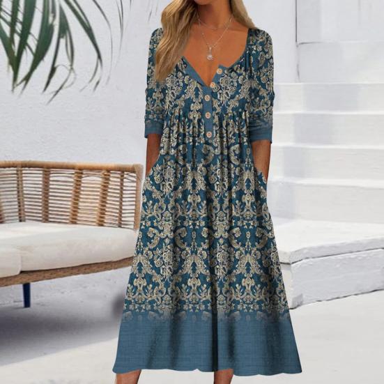 Elevate your style with this stylish Printed Pocket Button Long dress. Made of polyester, this dress offers a casual and loose fit, ensuring comfort all day long. The soft and lightweight fabric adds to the comfort, making it a perfect choice for various occasions.