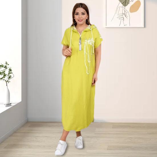 Elevate your casual wardrobe with this Summer Fashion Spliced Zipper Hooded dress for women. Crafted with a loose and casual design style, this dress is perfect for middle-aged women's daily wear.
