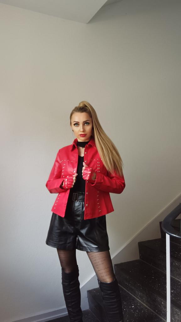 Short faux leather jacket 🥼 🔆Delivery time 🔆: 18 days to Germany. 🔆Scope of delivery 🔆: The delivery includes a beautiful jacket in the appropriate size and color. The product is available in 5 different colors. It is available in sizes from S to 3XL. I ordered it in red in size M and the jacket 🧥 fits me perfectly!!!! The jacket fits true to size, so I recommend you order your normal size or a size larger. I normally wear size S (36). I weigh 55kg and am 167cm tall. QUALITY 🔆: The jacket has an excellent quality, very well made, without unpleasant chemical smell. Material composition: Polyester, synthetic leather. ✅️To sum up, it's a beautiful faux leather jacket 🧥👍👍👍🔝 that runs true to size. 👍👍🔝You have to order it in a full size. Thank you Joom and the seller! 5 Stars! 🌟🌟🌟🌟🌟❗️❗️❗️❗️ I would be happy to recommend the product!👍🔝🔝🔝🔝✅️👌