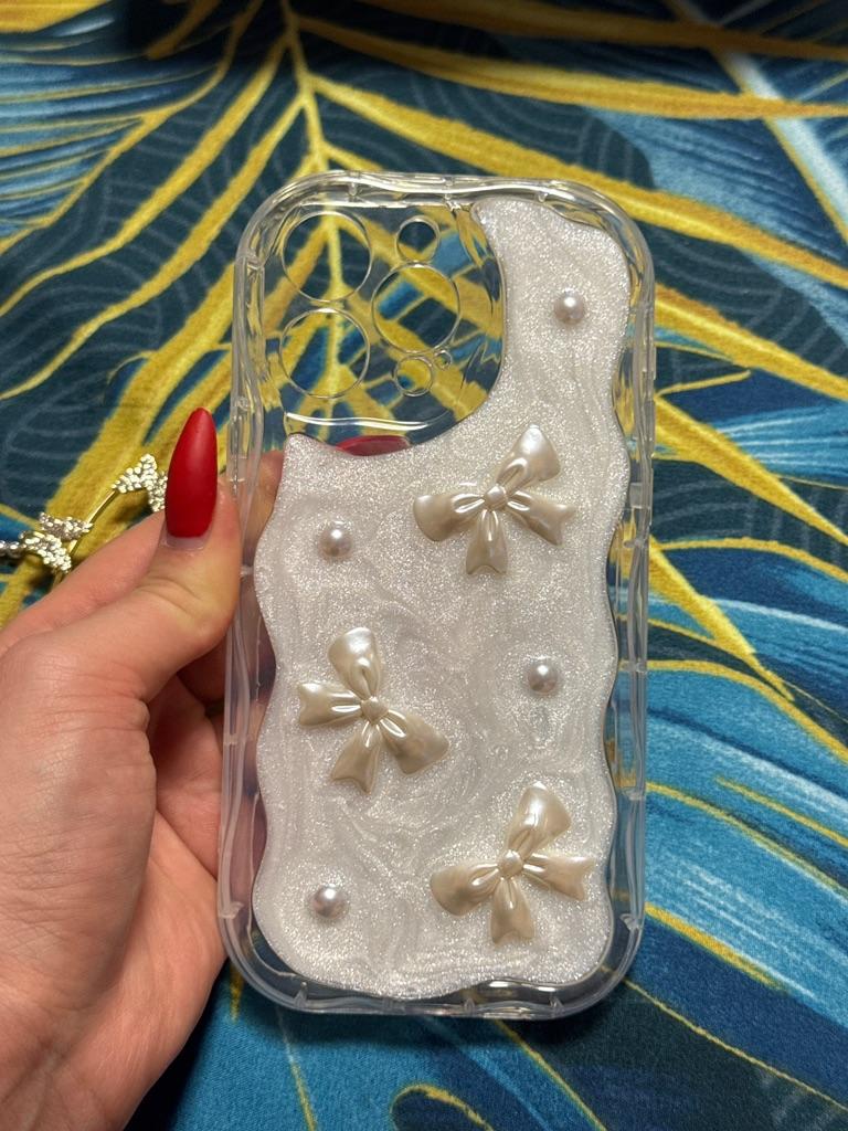 Cute Korean 3D Bow Pearl Phone Case For iPhone 15 14 13 12 11 Pro Max 14 Plus XS XR XS Max Shockproof Soft Cover — buy online with free worldwide shipping!
